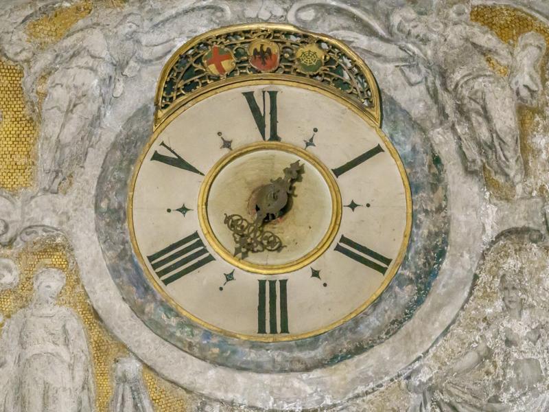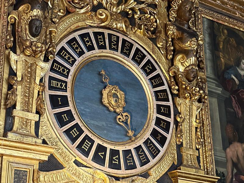 Finally, the Chamber of the State Advocacies (i.e., the lawyers’ room) in the Doge’s Palace has this clock in the room for lawyers. Like the others, it has only an hour hand, moving in the expected direction for a change. However, this clock only indicates six hours, so you have to know what quartile of a day you were in.
