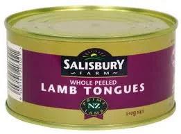 We reached a point in our civilization where we cut the tongues off baby sheep by the thousands, stuff them into cans, and ship them to customers eager to consume them. Lamb tongues probably look cute but seem to be unavailable in the U.S.. The tin in the picture is from New Zealand. Note that the Salisbury Farm product label points out whole peeled. Watch out for lesser brands, where the tongues may not peeled or may be truncated. Ingredients: Lamb tongues, mutton stock, salt, agar, potassium nitrate, potassium nitrite. Note the mutton stock. That’s made from simmering the bones of mature sheep with water, vegetables, and seasonings. The baby sheep tongues are packed in bone broth made from grown-up sheep.