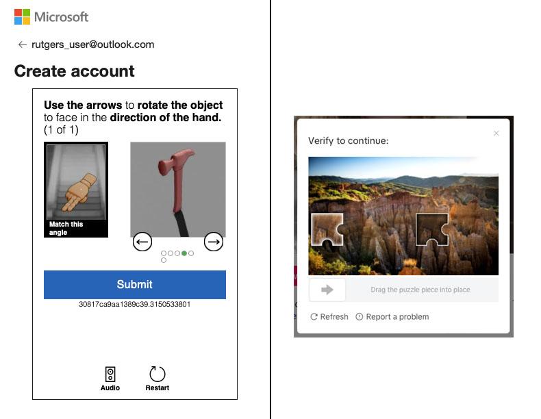 Users were asked to identify all images containing specific objects (“bridges,” “buses,” “traffic lights”) or to drag and drop puzzle pieces into place.